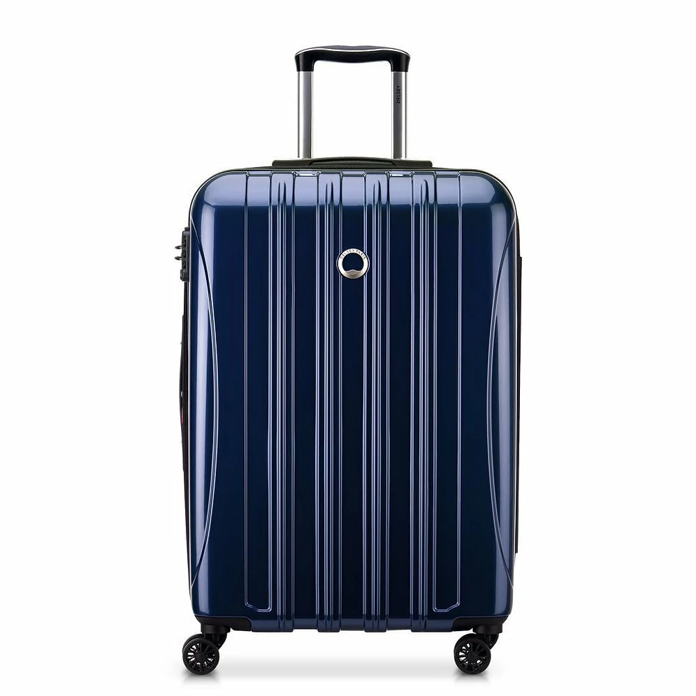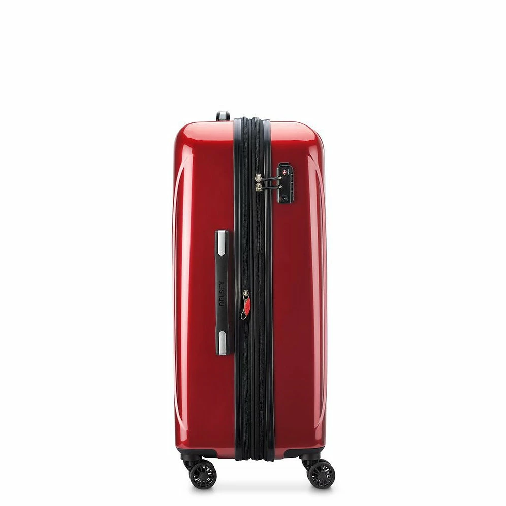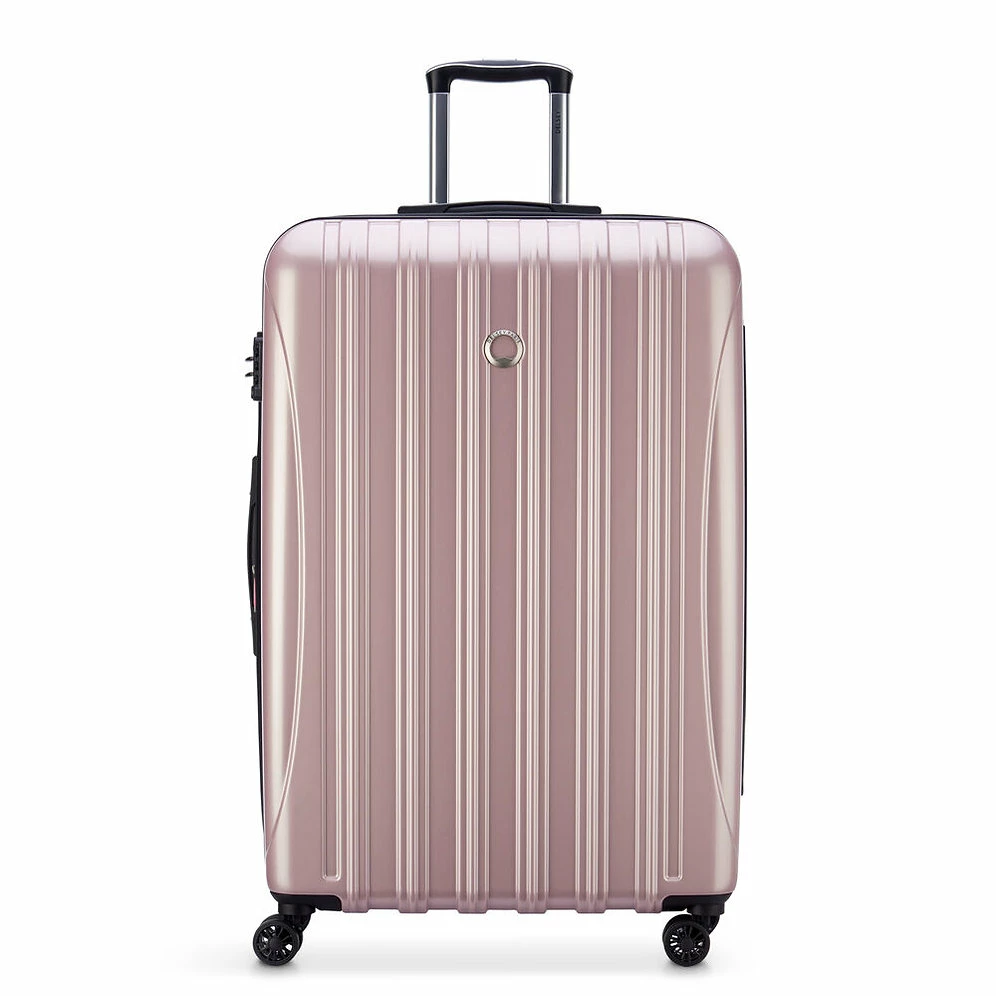 The main compartment of this large spinner is expandable for maximum packing flexibility. This feature is great when packing souvenirs on return journeys ! The interior includes two full packing compartments with a lined divider and tie-down straps to secure your belongings. YOUR BEST COMPANION ON THE MOVE This bag features double spinner wheels for superior maneuverability and maximum comfort. It is also equipped with soft-touch top and side carry handles that are convenient when lifting a fully packed case. The telescopic handle locks into two positions to accommodate two or four wheel use.