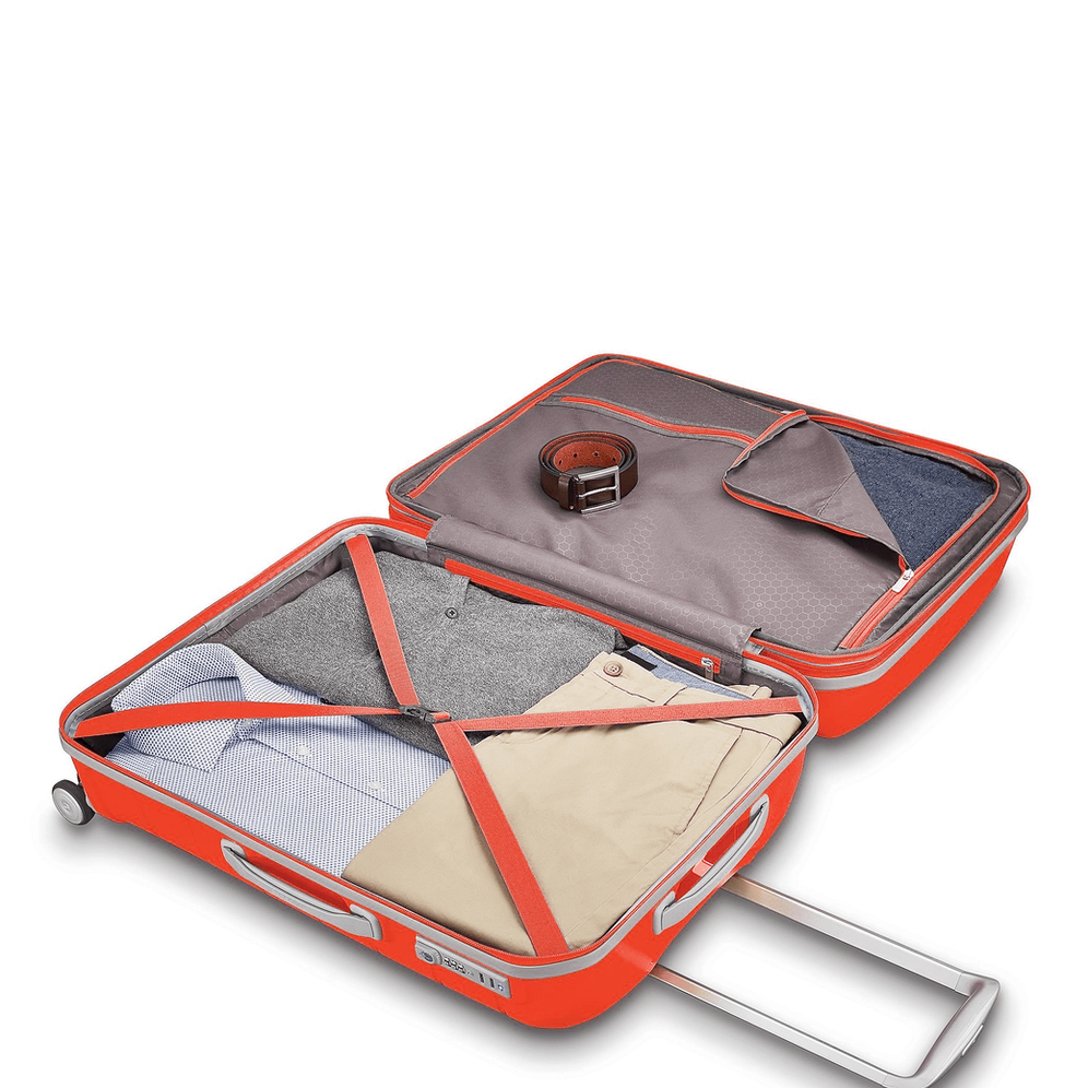 • Carry-On size and weight allowances vary by airlines. Go to shop.samsonite.com/airline-carry-on-guide for more details. If the bag is overstuffed, it may not be accepted by the airlines.