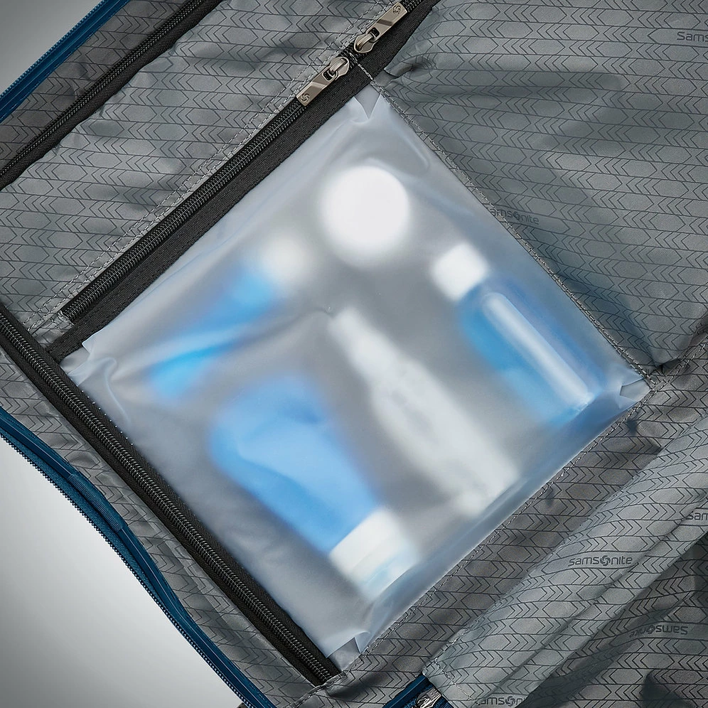 - Snap-in Cubed3™ Packing System for personalized organization, with integrated zippered pockets including WetPak™ for toiletries or damp items