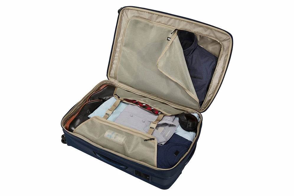 - Belongings are held securely in place with internal compression wings with zippered storage pockets